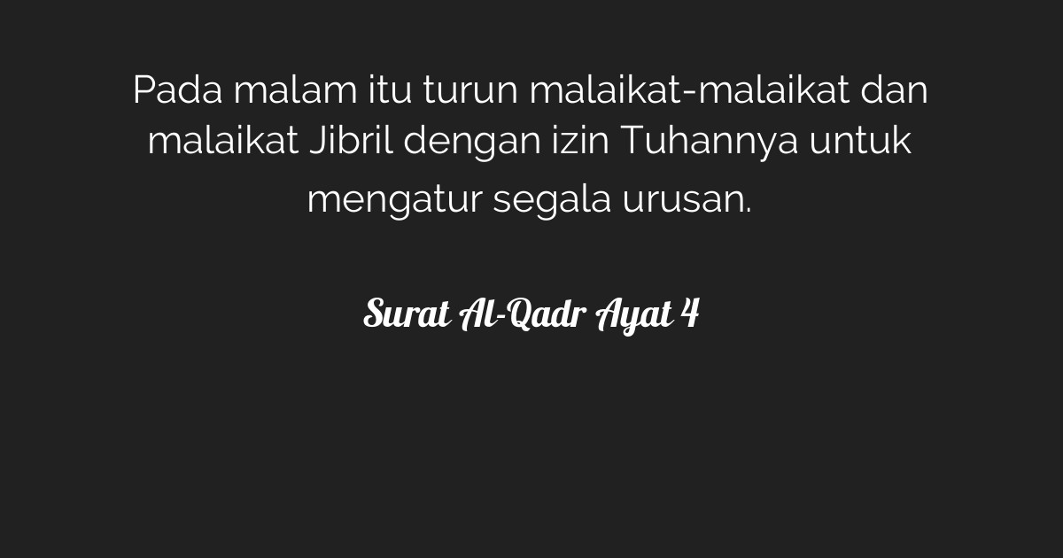 Surat Al-Qadr ayat 4 luidt: "Tanazzalu l-malā'ikatu wa r-rūḥu fīhā bi'idhni rabbihim min kulli amr." De vertaling hiervan is: "Daarin dalen de engelen en de Geest neer, met toestemming van hun Heer, met elke zaak." Deze woorden schilderen een beeld van goddelijke genade en zegeningen die neerdalen op de aarde.